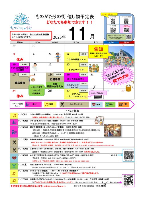 ものがたりの街 2025年11月イベント情報詳細