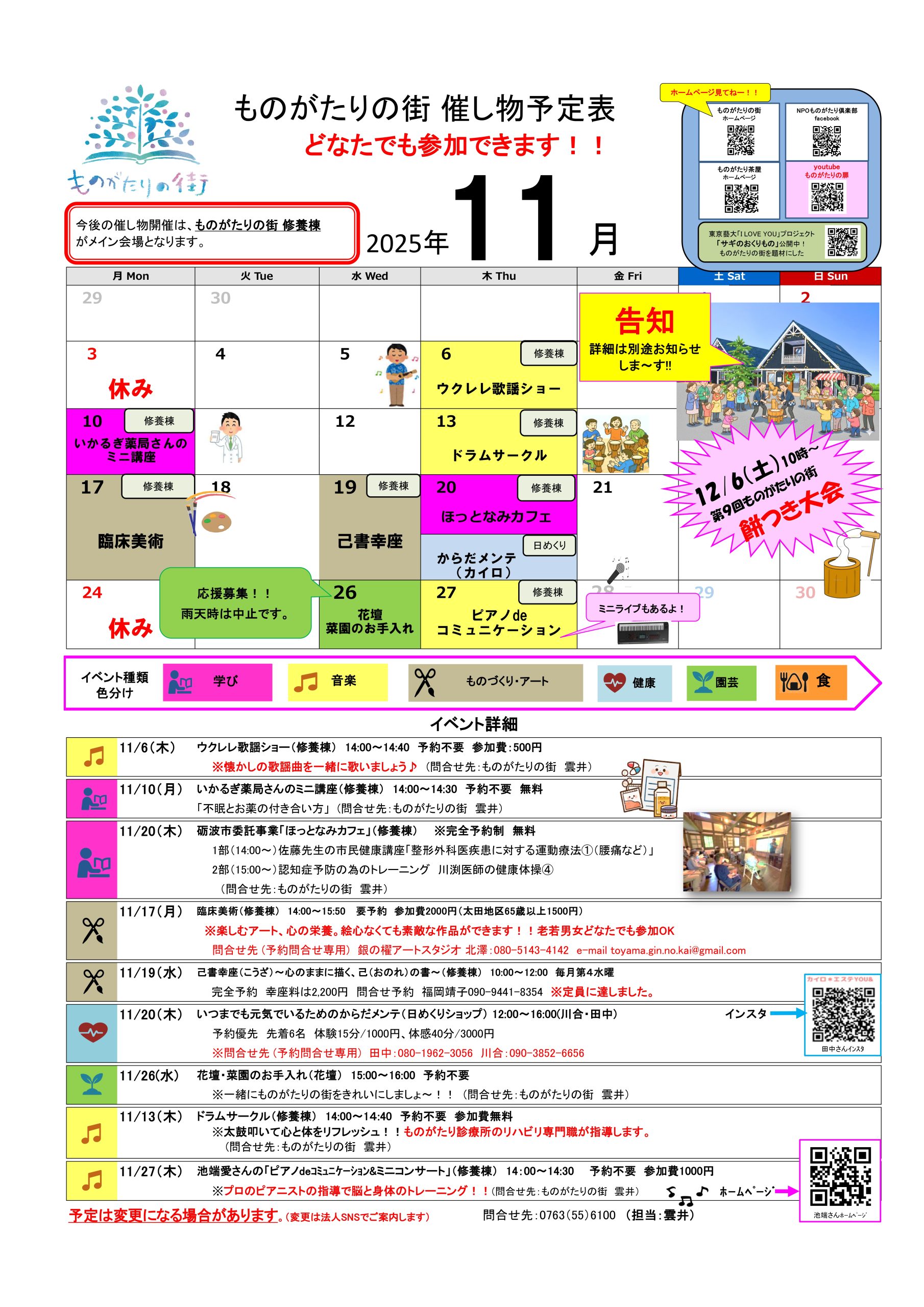 どの催し物も、どなたでも参加できます!!